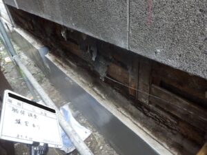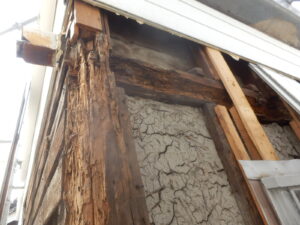 そのため、雨水が土間と建物の間に入りむことで蟻害、腐朽の原因になった考えられます。