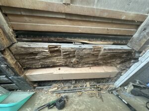 2階の床の根太が乗っているため、既存の劣化した梁が撤去出来ないため、